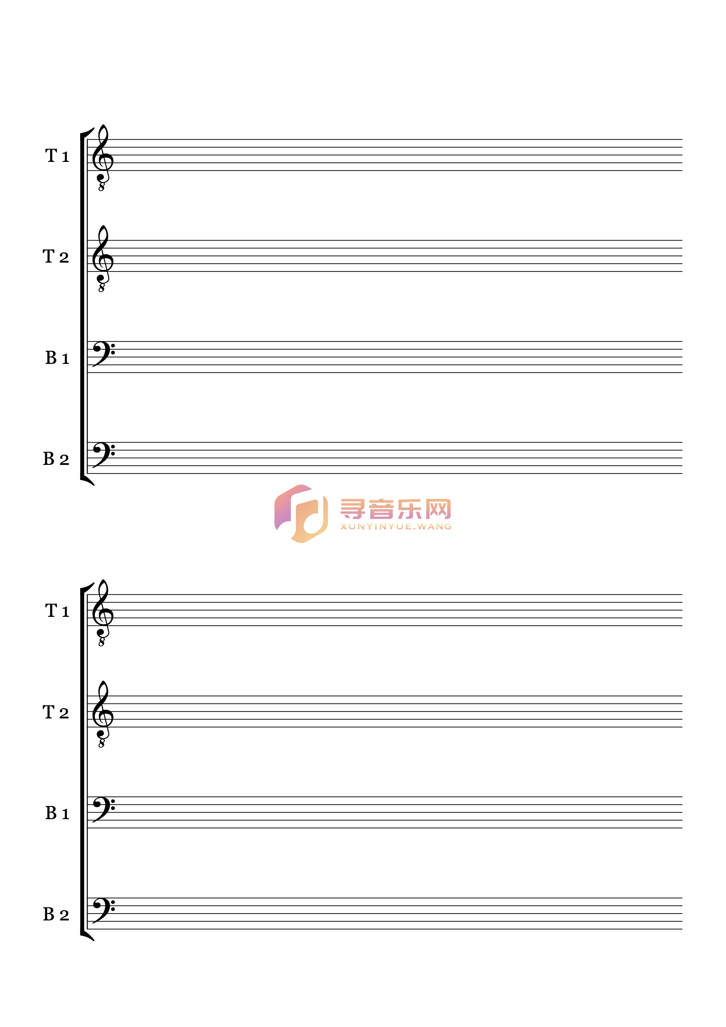 男高音1、男高音2、男低音1、男低音2(TTBB)空白五线谱 空白 推广 常见问题 账号禁止共享使用说明账号禁止共享或多地异常登录,我们有严格验证机制会自动封号处理,封号后不支持解除,谢谢配合。 寻音乐网官方地址公告唯一域名:xunyinyue.wang,以防受骗请确认地址。