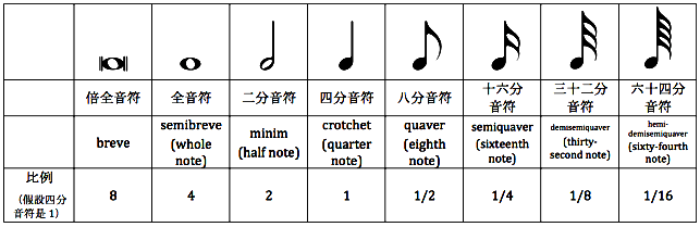 音名命名:将全音符平均分成几份,每份音符称为几分音符。如四分音符为全音符平均分成四份中的一份时值。