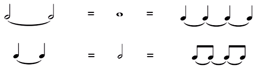 - 两个音符组变成二连音