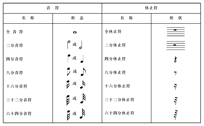 音符和休止符对比如下,四分音符以下和四分休止符都以增加类似的符干