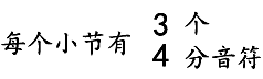 拍子记号简称拍号。上方数字表示每个小节的拍数,下方数字表示每一拍的时值。表示以四分音符为一拍、每小节有3拍。