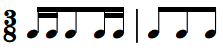 3.在3/8拍中,符尾可以连在一起